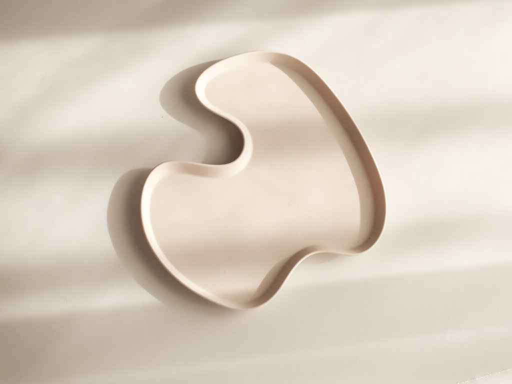 Designový asymetrický tác materiálem připomínající kámen, je uklidňujícím designovým doplňkem vašeho domova, kterému dodává lehkou a vzdušnou atmosféru, jež povznáší vaší každodenní rutinu. Skvěle se hodí k vystavení kosmetických produktů, šperků nebo jiných osobních předmětů dle vašeho výběru.