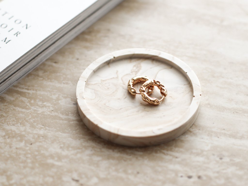 Malý kulatý podtácek v mramorovém designu, využijete na šperky, svíčky, skleničku nebo drobné doplňky. Skvěle poslouží jako stylový podnos pro kosmetiku, klíče nebo drobné předměty v předsíni, koupelně i ložnici. Jeho čisté linie a jemná textura si snadno získá vaše srdce.