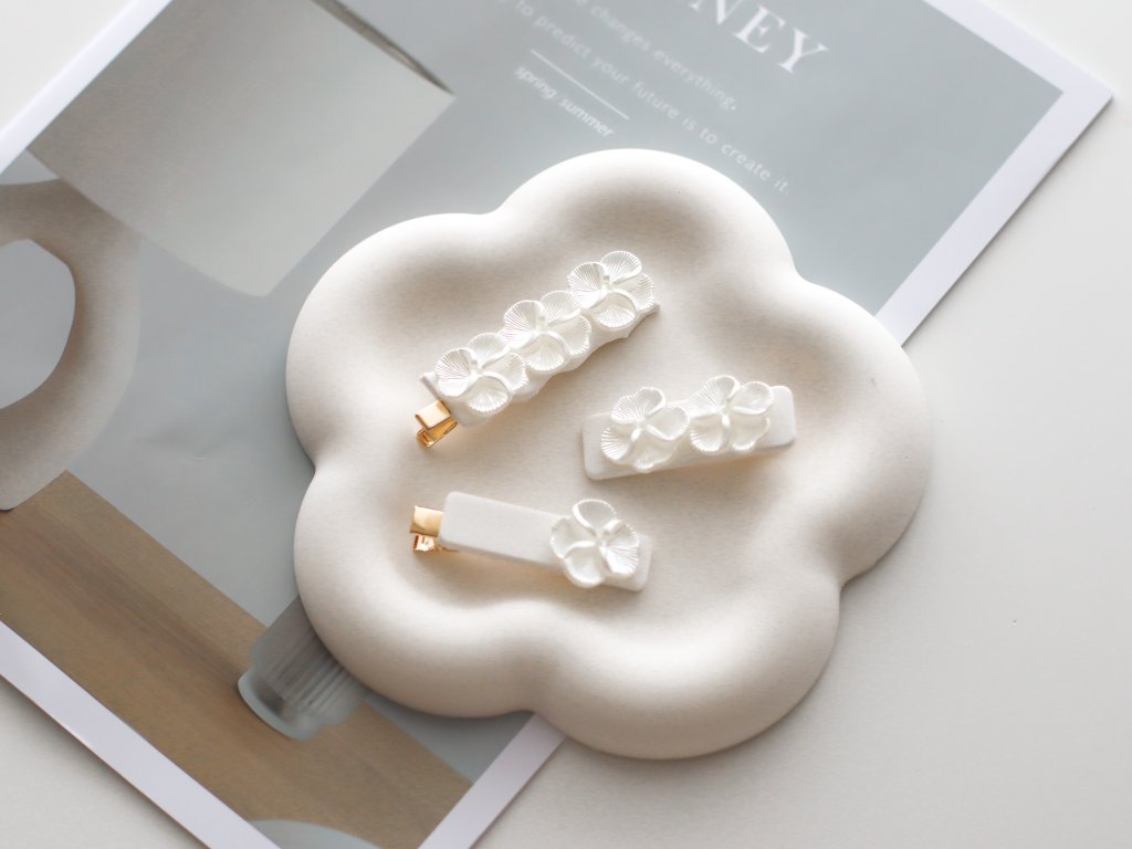 Jemný tácek ve tvaru roztomilého něžného květu, ručně odlévaný z kvalitního Jesmonitu.