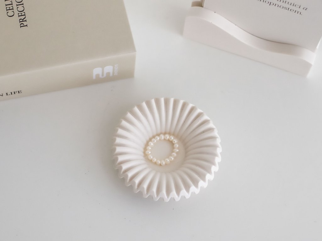 Vroubkovaná mistička na prstýnky, náušnice a další šperky, vyrobená z jemného Jesmonitu