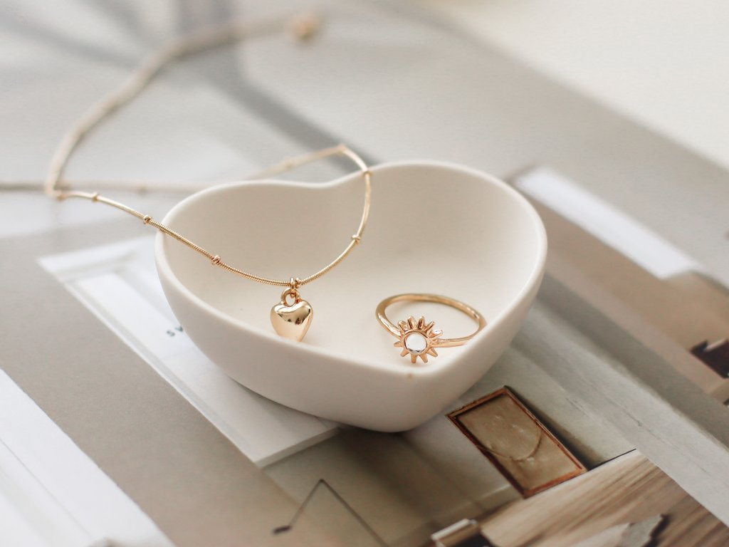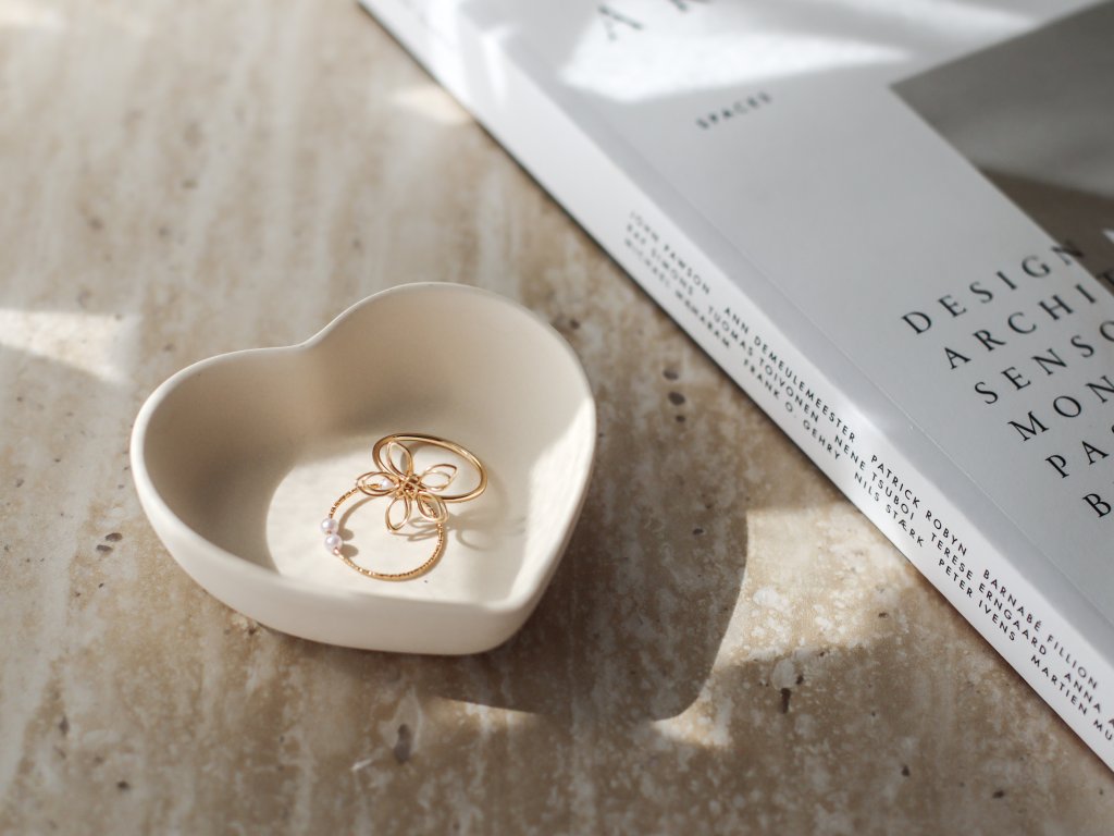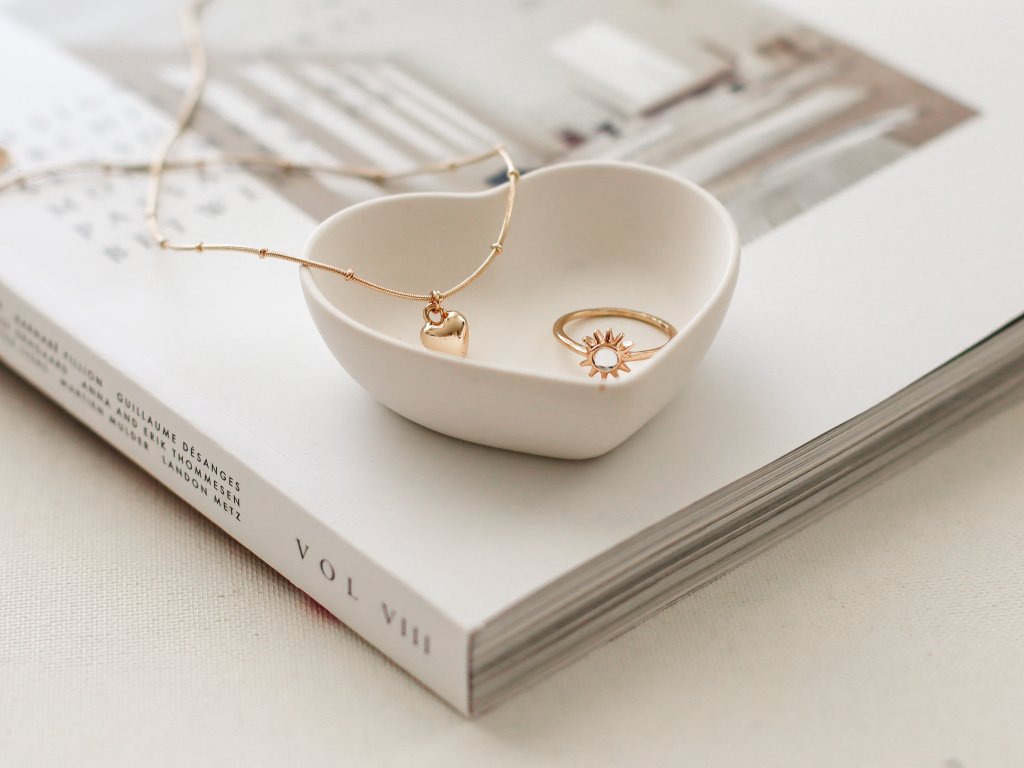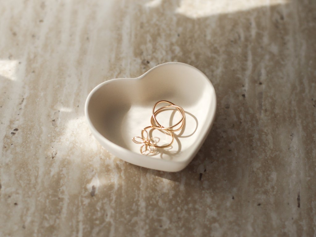Minimalistická miska ve tvaru srdce z ekologické hmoty Jesmonite
