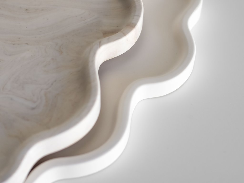 Každý tác je ručně odlévaný z Jesmonitu a díky unikátní struktuře je každý kus originál.