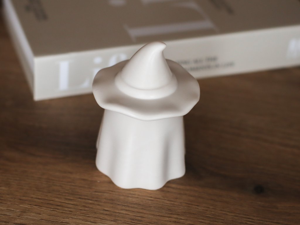 Minimalistická svíčka ve tvaru čarodějky, vnáší do prostoru kouzelnou podzimní atmosféru.