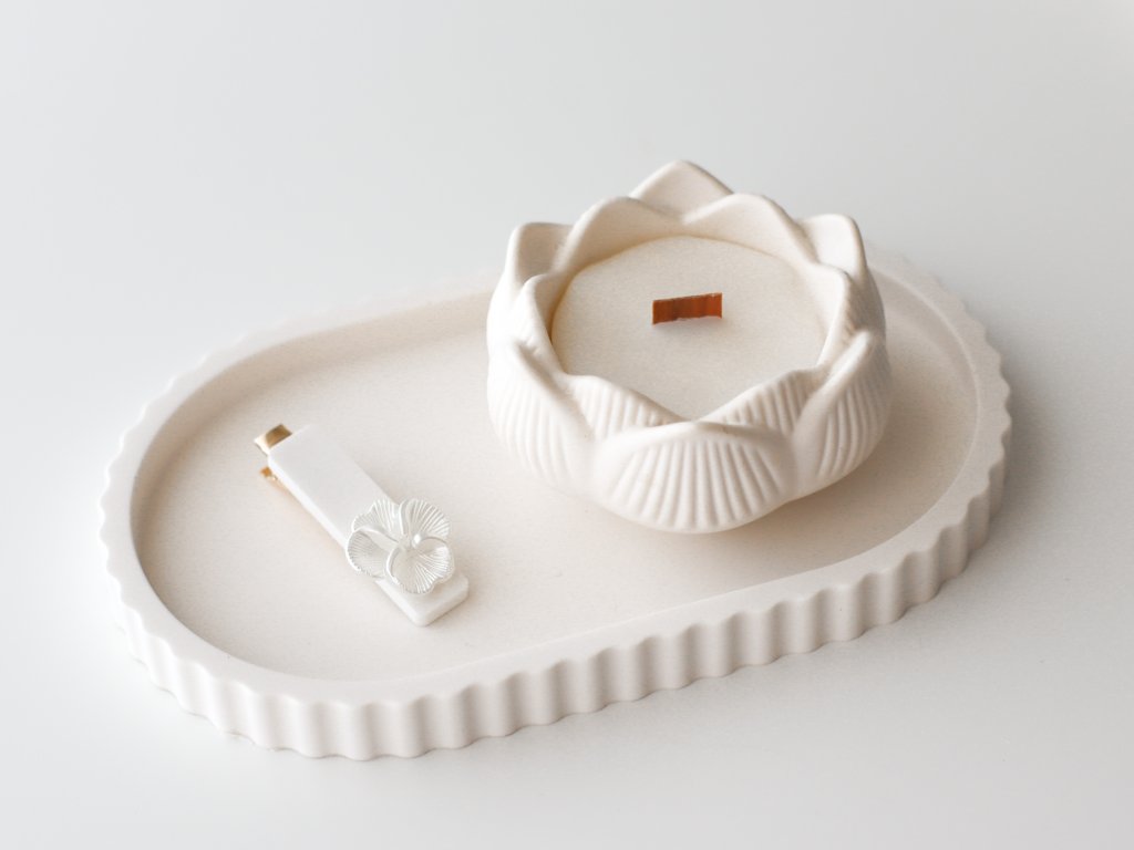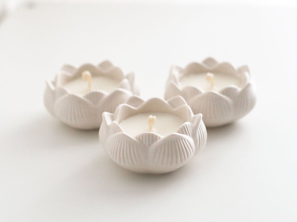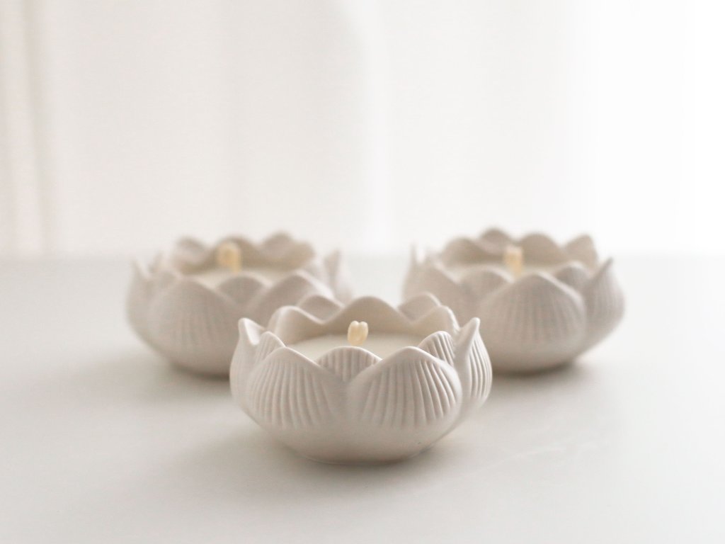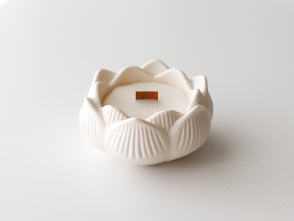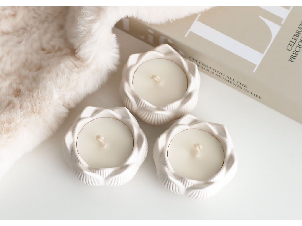Jemná svíčka v ručně odlévané lotusové mističce