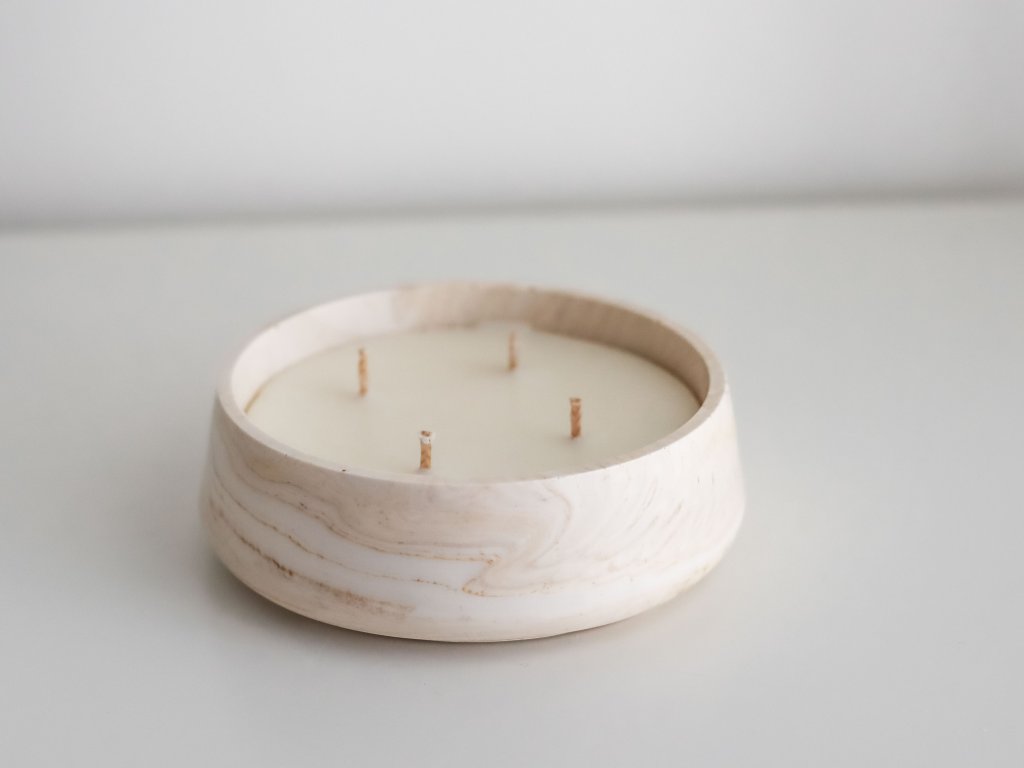 Ručně vyrobená mísa v mramorovém nádechu, se svíčkou ze sójového vosku