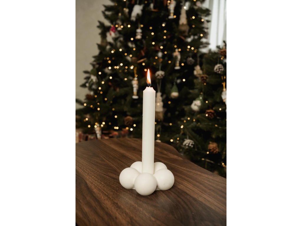 Svícen Bubble Calm připomíná malé bublinky radosti – symbol klidu, dětské hravosti a radosti, která se rozlévá po místnosti, když zapálíte svou oblíbenou svíčku. Skvěle vynikne na stole při vánoční večeři, na poličce vedle oblíbené knihy nebo jako dárek pro někoho, komu chcete dopřát trochu světla a pohody.