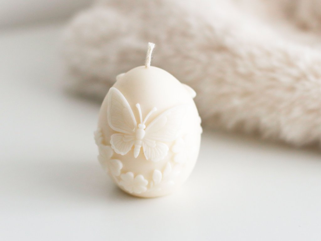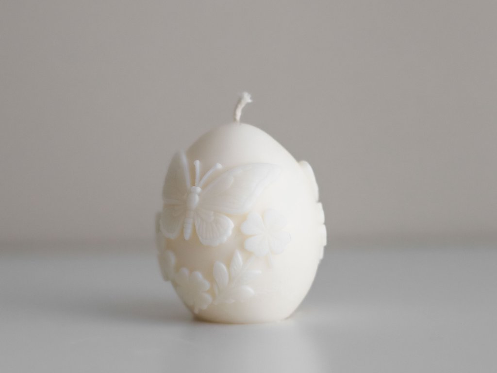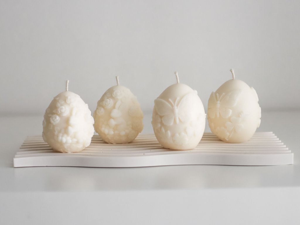 Jarní dekorativní svíčky ve tvaru vajíček jsou ručně vyráběné z přírodního sójového vosku.